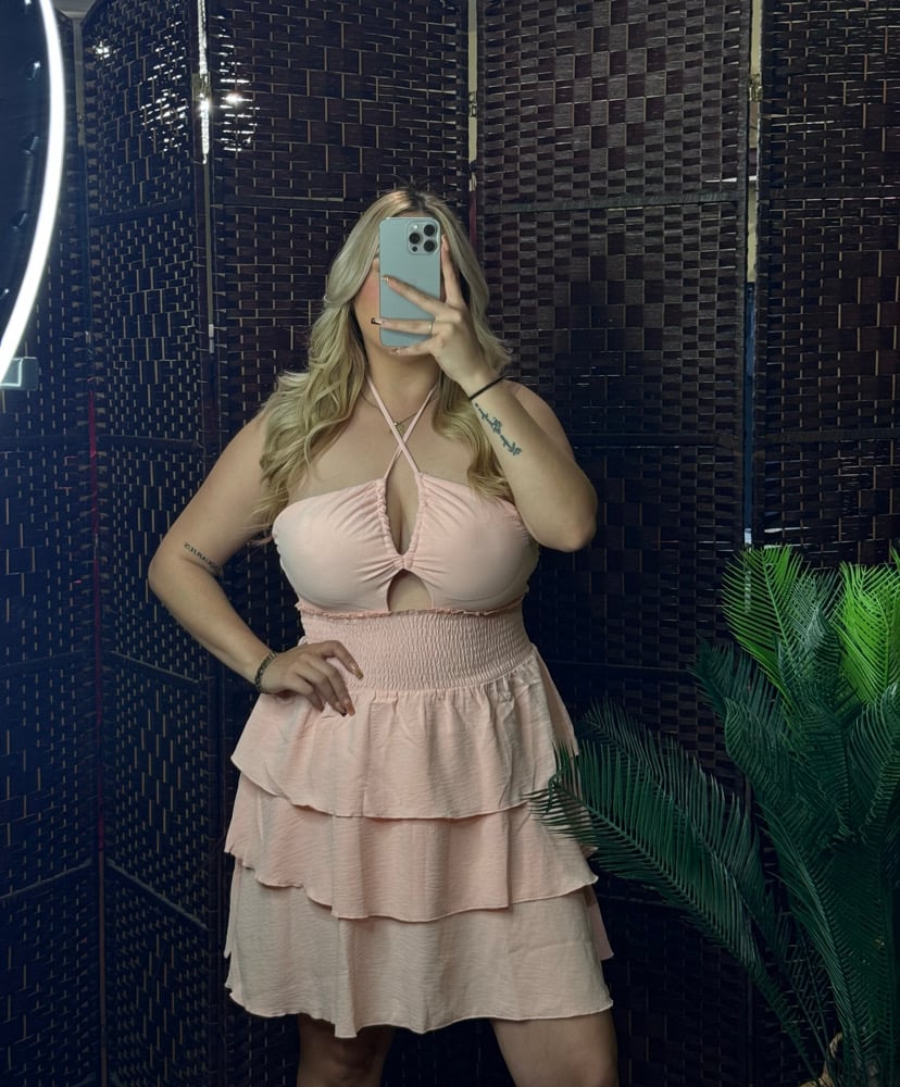 Blush Flow Halter Neck Ruffle Mini Dress, Bra Paddings