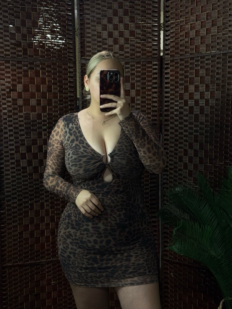 Leopard Front O-Ring Trim W/KeyHole Detail Long Sleeve mini dress