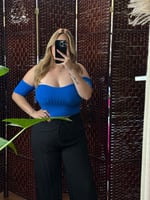 Blue,Orange Off-the-shoulder Cropped Sweater
